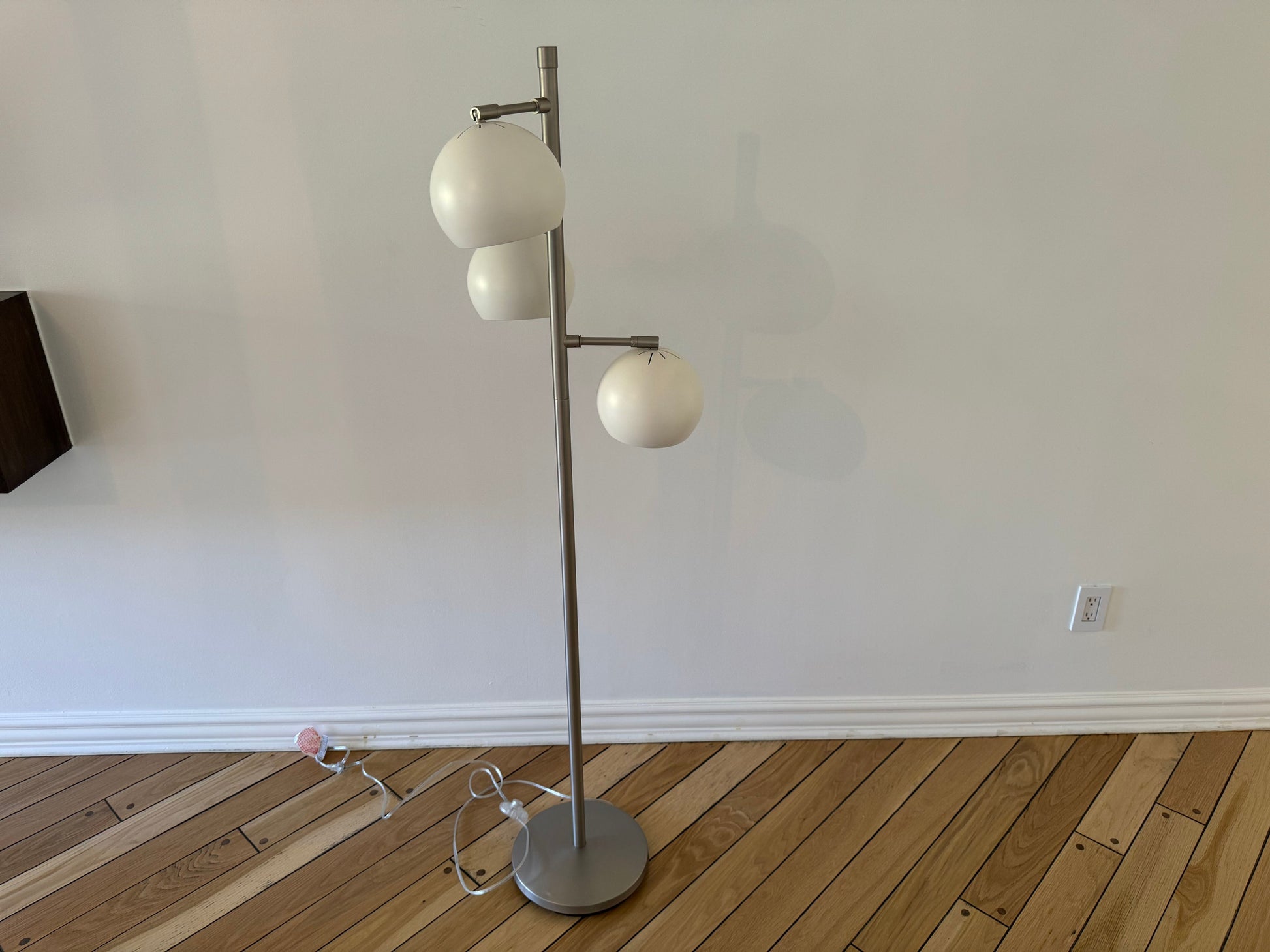 Floor Lamp: MCM Style White Matte 3 Shades & Polished Nickle